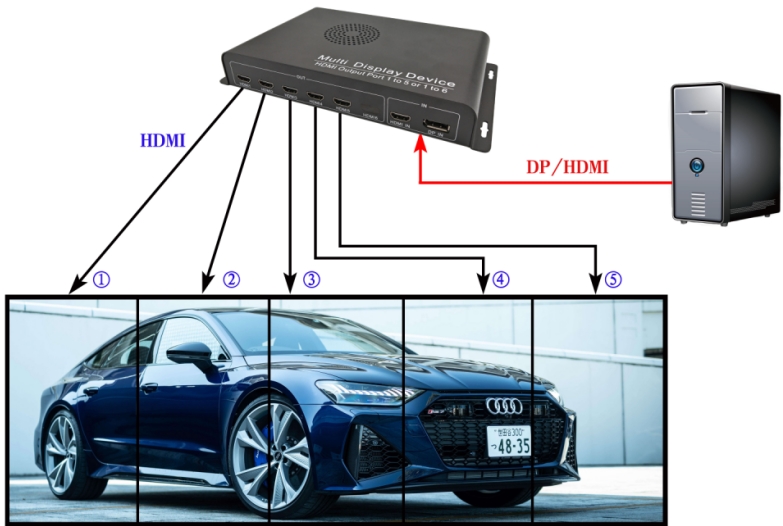 本產(chǎn)品是一款多功能5屏圖像處理器,采用1路DP 輸入、1路HDMI輸入,5路HDMI輸出,產(chǎn)品可以實(shí)現(xiàn)拼接、分配模式,本產(chǎn)品可以實(shí)現(xiàn)輸出與顯示器完全匹配、無(wú)損的分辨率。輸入支持最高分辨率5×1920×1200@30HZ(豎向)、5×1366×768@60HZ(橫向),并且向下兼容。